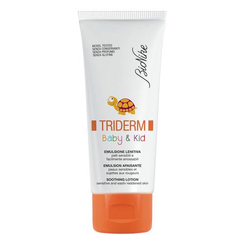 NICKEL TESTED SENZA CONSERVANTI SENZA PROFUMO SENZA GLUTINE BioNike TRIDERM Baby & Kid EMULSIONE LENITIVA pelli sensibili e facilmente arrossabili Prodotto con ingredienti lenitivi ed addolcenti. Protegge quotidianamente la pelle dalle aggressioni e attenua i disagi causati da eccessiva secchezza cutanea. Grazie all’elevata tollerabilità, può essere utilizzata fin dai primi giorni di vita del bambino. Consigliato per proteggere e lenire i disagi conseguenti a secchezza cutanea o ad altre patologie. Grazie all’elevata tollerabilità può essere usata fin dai primi giorni di vita del bambino. Modalità d'utilizz...