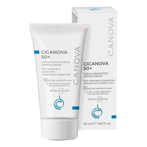 CANOVA CICANOVA 50+Descrizione Crema riparatrice, è un trattamento indicato per la foto-protezione di pelli fragilizzate o stressate. Contiene un sistema filtrante che garantisce una protezione molto elevata UVA, UVB e dalla luce blu. Con 16% Blue Light Ban Complex. Componenti Aqua, octocrylene, dibutyl adipate, methylene bis-benzotriazolyl tetramethylbutylphenol (nano), ethylhexyl salicylate, butyl methoxydibenzoylmethane, bis-ethylhexyloxyphenol methoxyphenyl triazine, dicaprylyl carbonate, glycerin, ozonized olive oil, potassium cetyl phosphate, decyl glucoside, caprylyl glycol, 1,2-hexanediol, xanthan gum, sodium hyaluronate...