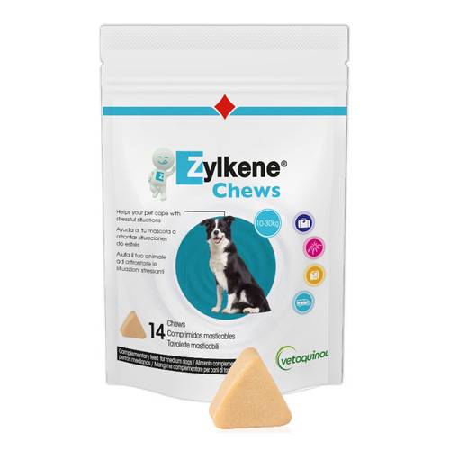 ZylkèneDescrizione Mangime complementare per cani e gatti. Prodotto in tavolette masticabili altamente appetibili per cani e gatti a base di caseina (idrolizzato triptico di caseina bovina) che aiuta l'animale ad affrontare le situazioni stressanti e promuove l'equilibrio comportamentale. Somministrare a cani e gatti sottoposti a situazioni stressanti o prima di eventi come cambiamenti ambientali, restare a casa soli, nuove persone o animali, svezzamento, viaggi, fuochi artificiali o in qualsiasi circostanza in cui la routine dell'animale venga modificata. Ingredienti Amido di mais pregelatinizzato, glicerina, cellulosa in polvere,...